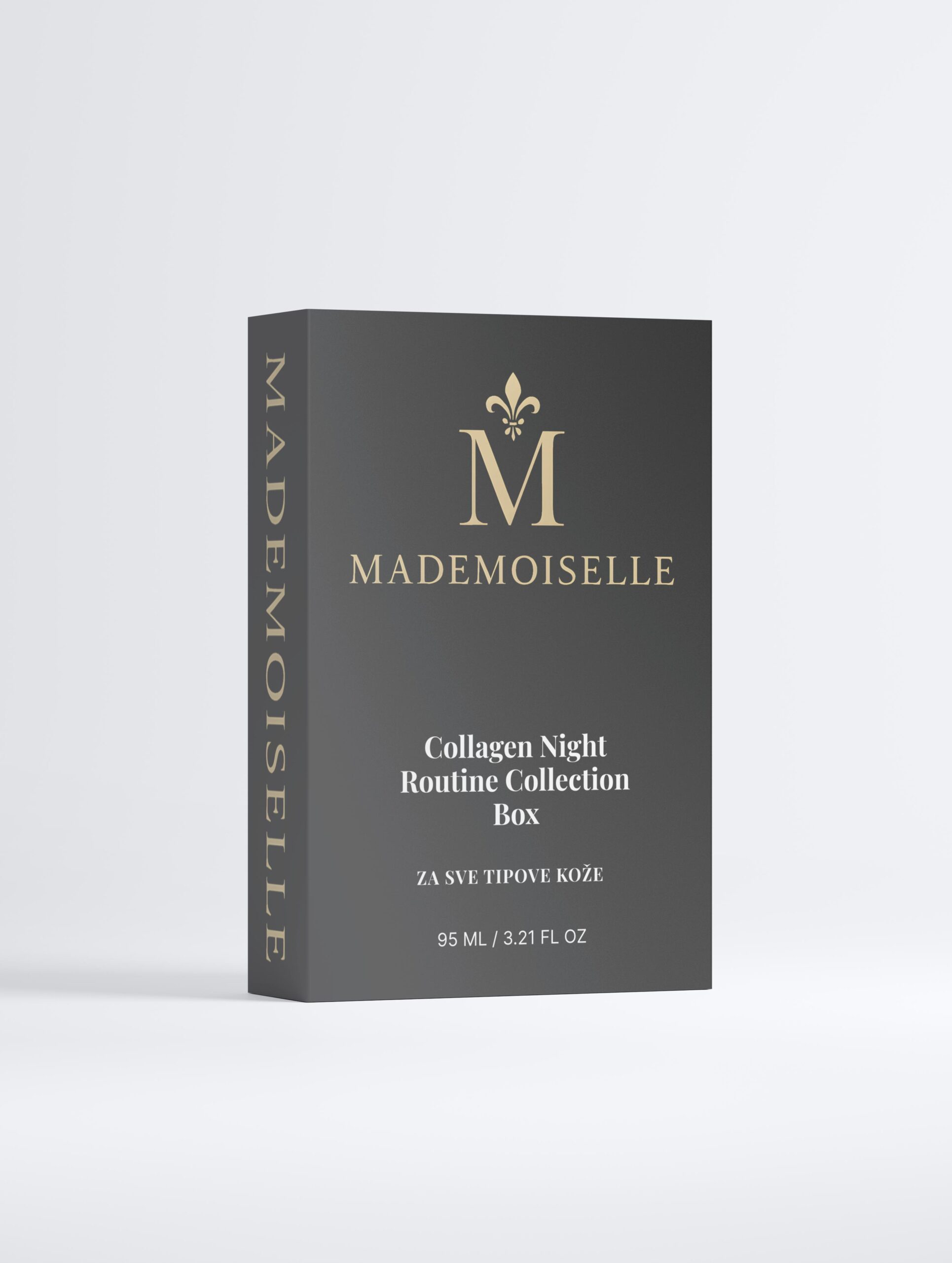 Premium noćni set za lice s kolagenom: hidratizira, zaglađuje i regenerira kožu dok spavate. Uključuje noćnu kremu, serum i kremu za područje oko očiju u elegantnoj crnoj kutiji.